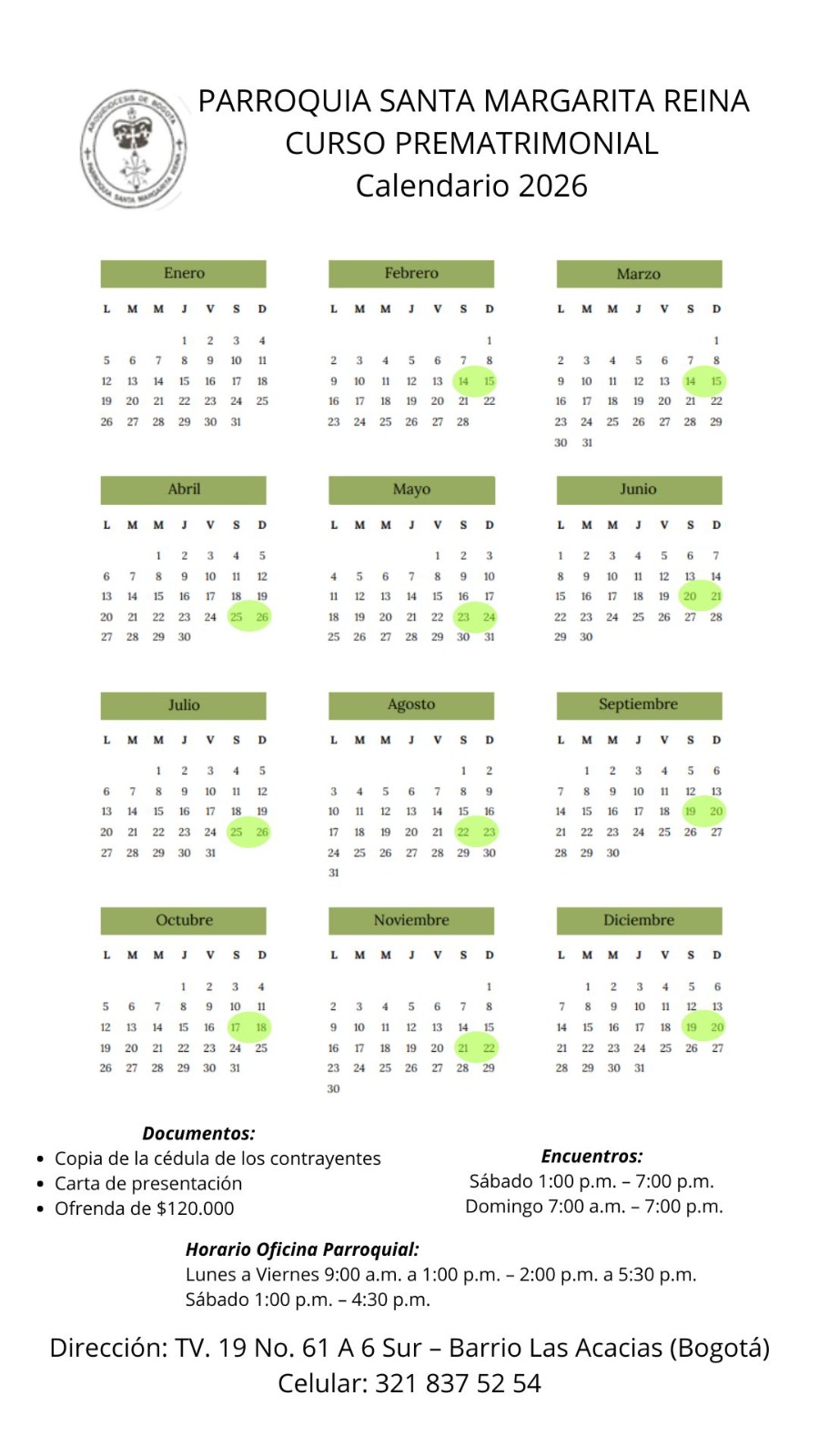 PROGRAMACIÓN DE LOS ENCUENTROS PREMATRIMONIALES AÑO 2026