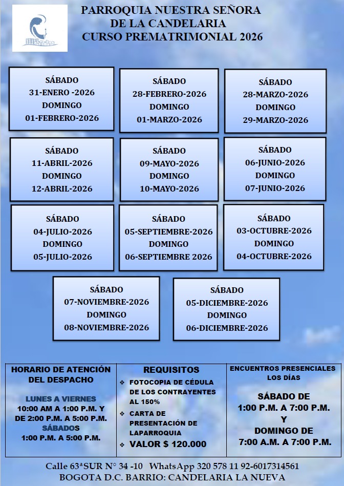 SANTA ISABEL DE HUNGRÍA 4 de Febrero de 2025 Like 1 Dislike 0 Otros artículosLa Arquidiócesis de Bogotá acompaña la Pastoral Familiar3 de Marzo de 2026#FamiliasCultivandoLaFe Curso Específico III "Fundamentos teológicos - pastorales para la preparación inmediata al sacramento del matrimonio"19 de Febrero de 2026#FamiliasCultivandoLaFe