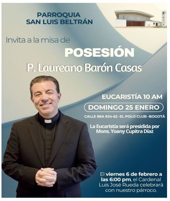 NoticiasPOSESIÓN Padre Laureano Barón Casas26 de Enero de 2026Viernes 06 de febrero a las 6:00 pm, el Cardenal Luis José Rueda celebrará con nuestro Párroco Like 2 Dislike 0